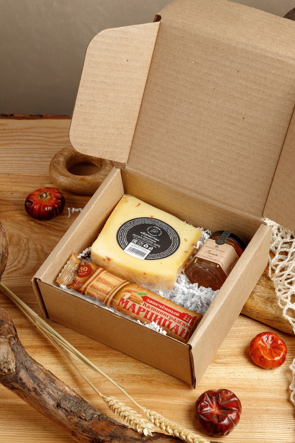 1. Качотта с томатом 150 гр2. Мед маленький 70 гр3. Марципан 1 шт